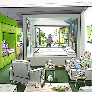 Die Badewelt selbst wurde komplett neu gedacht. Die Therme wurde zum Spreewald 360°, einer Auenlandschaft zum Eintauchen, mit dem Gefühl, auf einem Fließ durch den Wald zu treiben, untermalt vom Klang der Natur unter Wasser. Dazu kamen die weltweit ersten Smart Slides: interaktive Rutschen, die sich per Smartphone personalisieren lassen, in Farbe, Licht, Musik und Effekten. Man kann gegen Freunde antreten, Zeiten teilen, Rekorde brechen. Wir waren die Ersten. Das macht uns stolz.