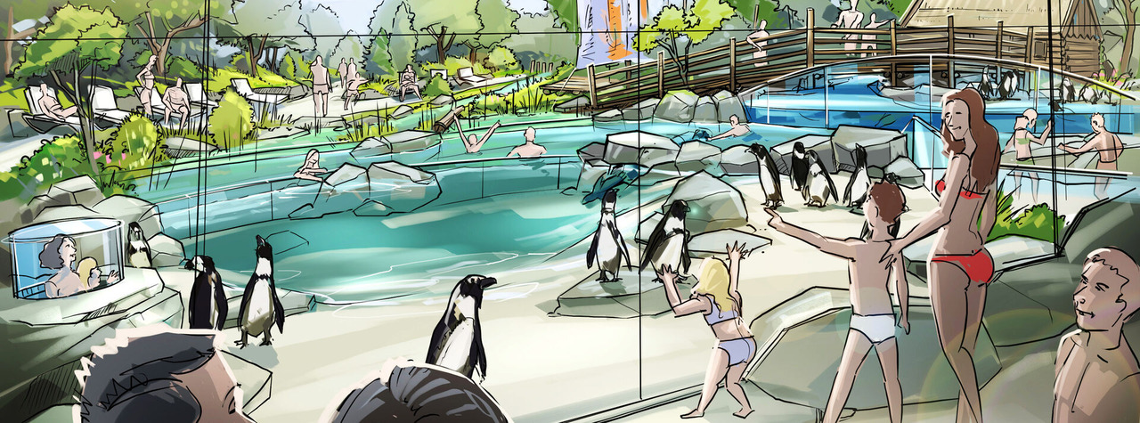 Gemeinsam mit dem renommierten Berliner Erlebnisarchitekturbüro dan pearlman haben wir das Konzept des Schwimmens mit Pinguinen zu dem entwickelt, was es heute ist: ein einzigartiges Erlebnis, das es so nur bei uns gibt. Man schwimmt, und die Pinguine sind dabei. Durch Unterwasserscheiben, durch eine durchdachte Anlage, die Tierwohl und Gästeerlebnis in perfekter Balance hält.